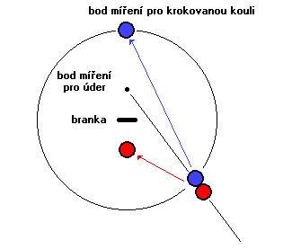 Střed úsečky mezi koncovými pozicemi koulí je místo kam budete (přibližně) mířit.