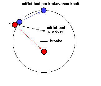 - Umístěte strikerovu kouli proti roquetované kouli tak, aby přímka procházející středy ukazovala přesně na místo, kam chcete posunout roquetovanou kouli.